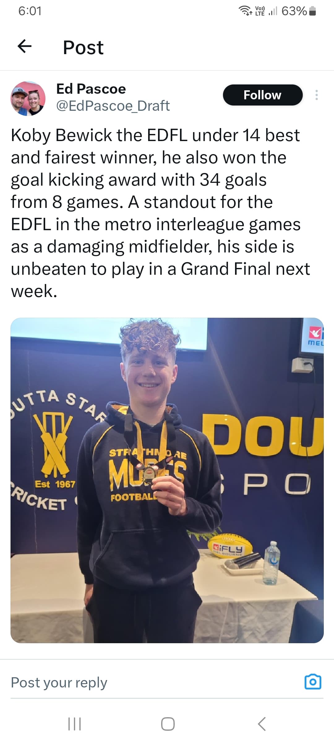 Thanks, I was sitting in the top deck right behind it, was an elderly hawk supporter next to me, one of the nicest blokes I ever met and wished us luck in the granny.