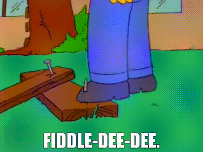 I love this whole episode. Impales his foot through a nail after smashing his thumb with a hammer and lets go a fiddle dee dee.