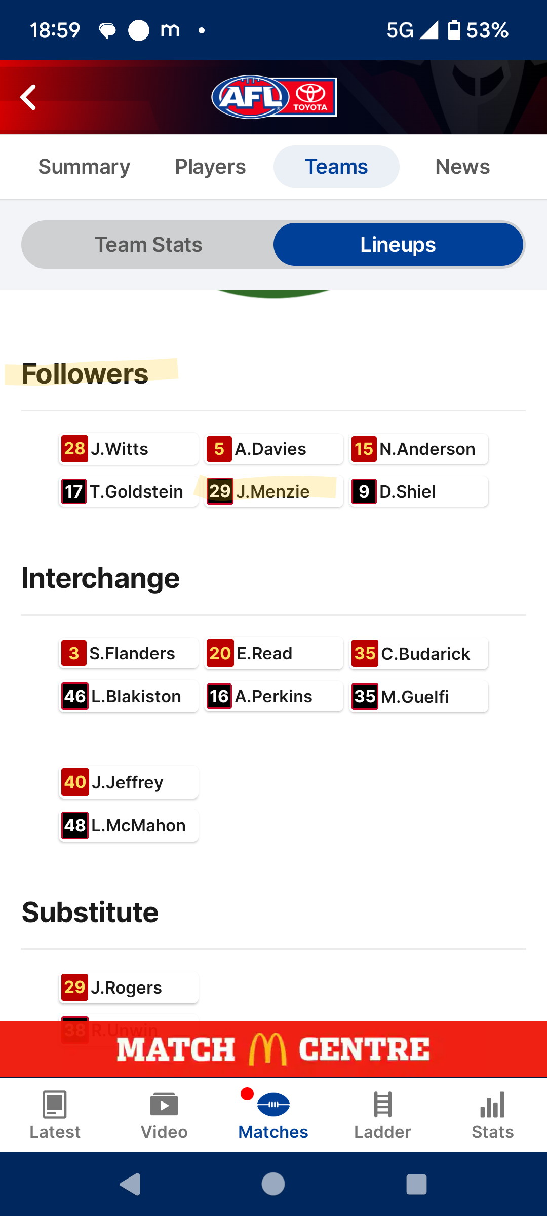Is Johnson a late in? He’s suited up, walking around in the rooms on AFL 360?