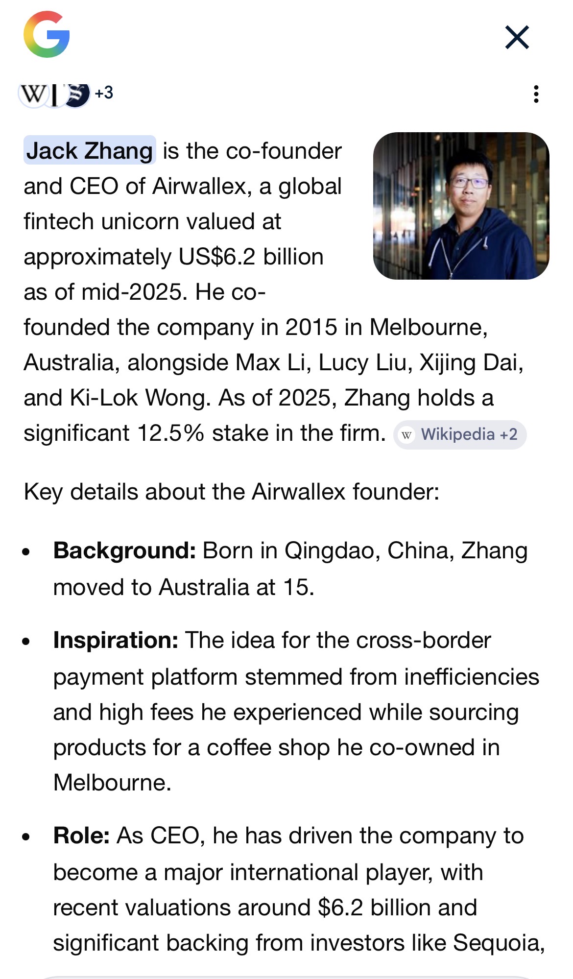 Airwallex, a financial services organisation. Never heard of them. News to follow.