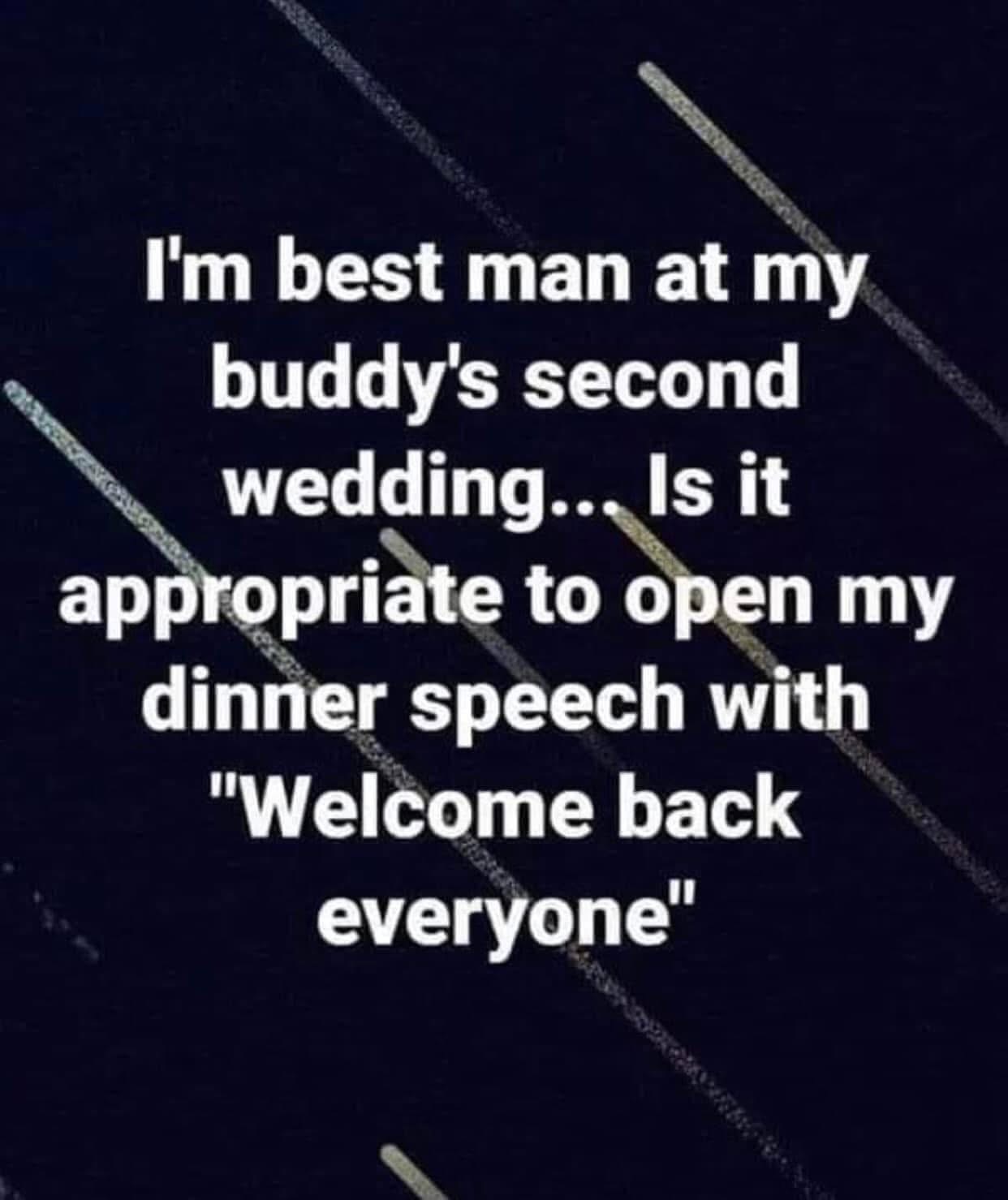 At my third Nuptial, my Dad asked for a show of hands on who have been to all three.