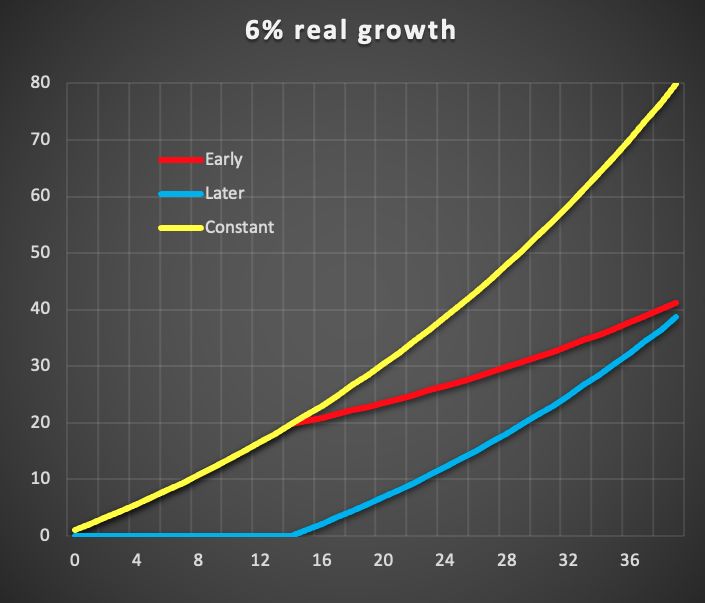 Yes, you might (might) have more spare money later in life, but getting in early has a huge effect.
