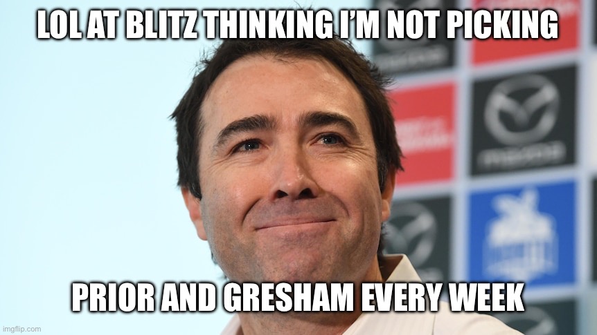 i know you dont rate him but you cant say gresham has no forward craft. hes kicked over 30 goals a couple of times in a season. I love what im seeing from the huss but if hes unfit I dont think they will play him right away.