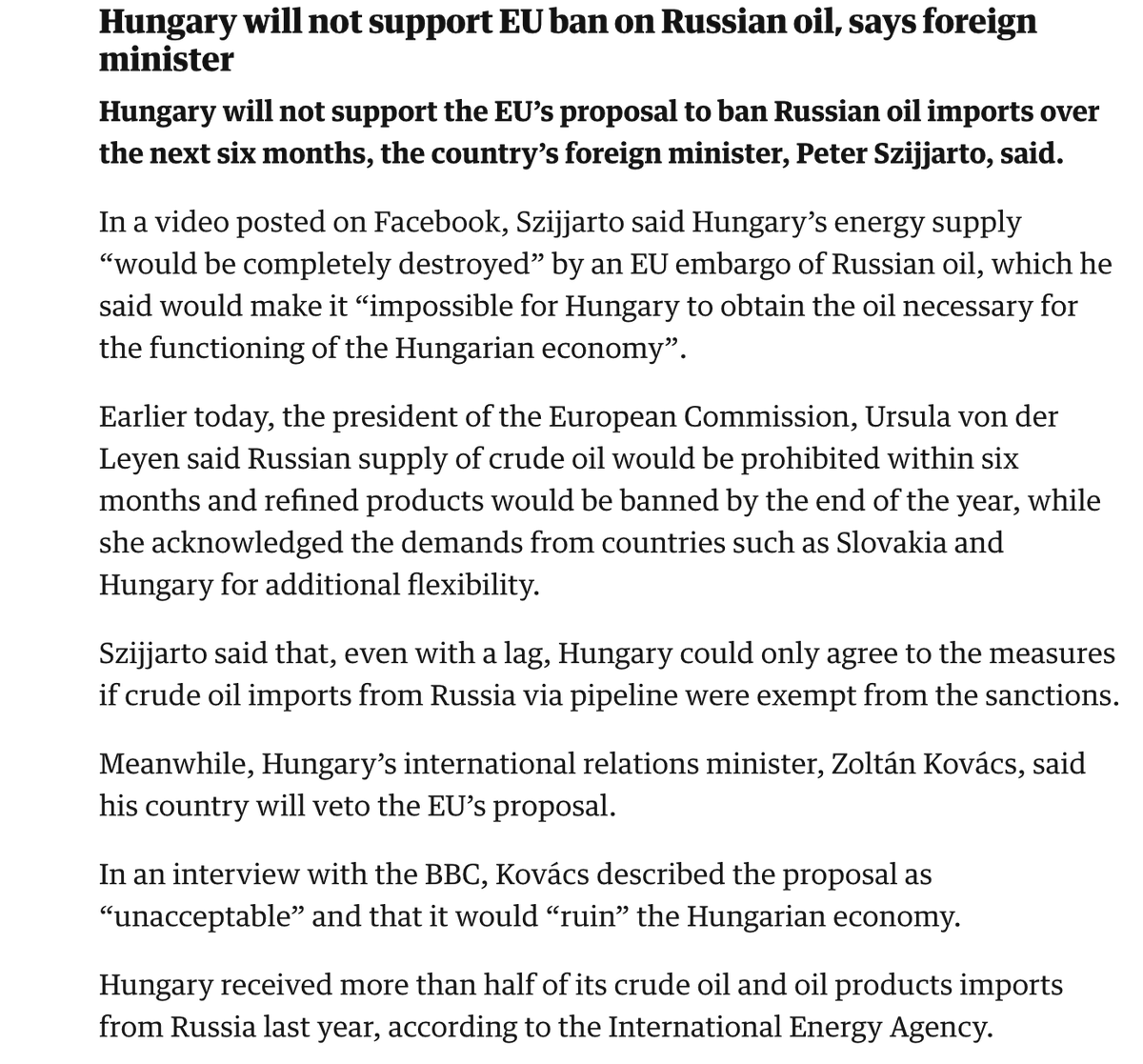 The rest of the EU should ban the Russian petro stuff and leave Hungary on its own.