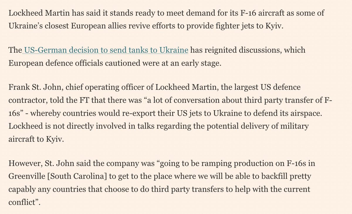 Finally, there’s reports of Ukrainian pilots already training in the US on western aircraft. No announcement yet what type, F-16 is a good guess, A-10 could also be in play. This could be pure misinformation, but it would make sense for it to be true.