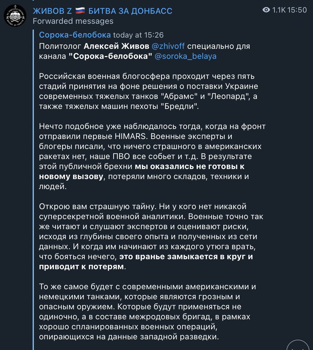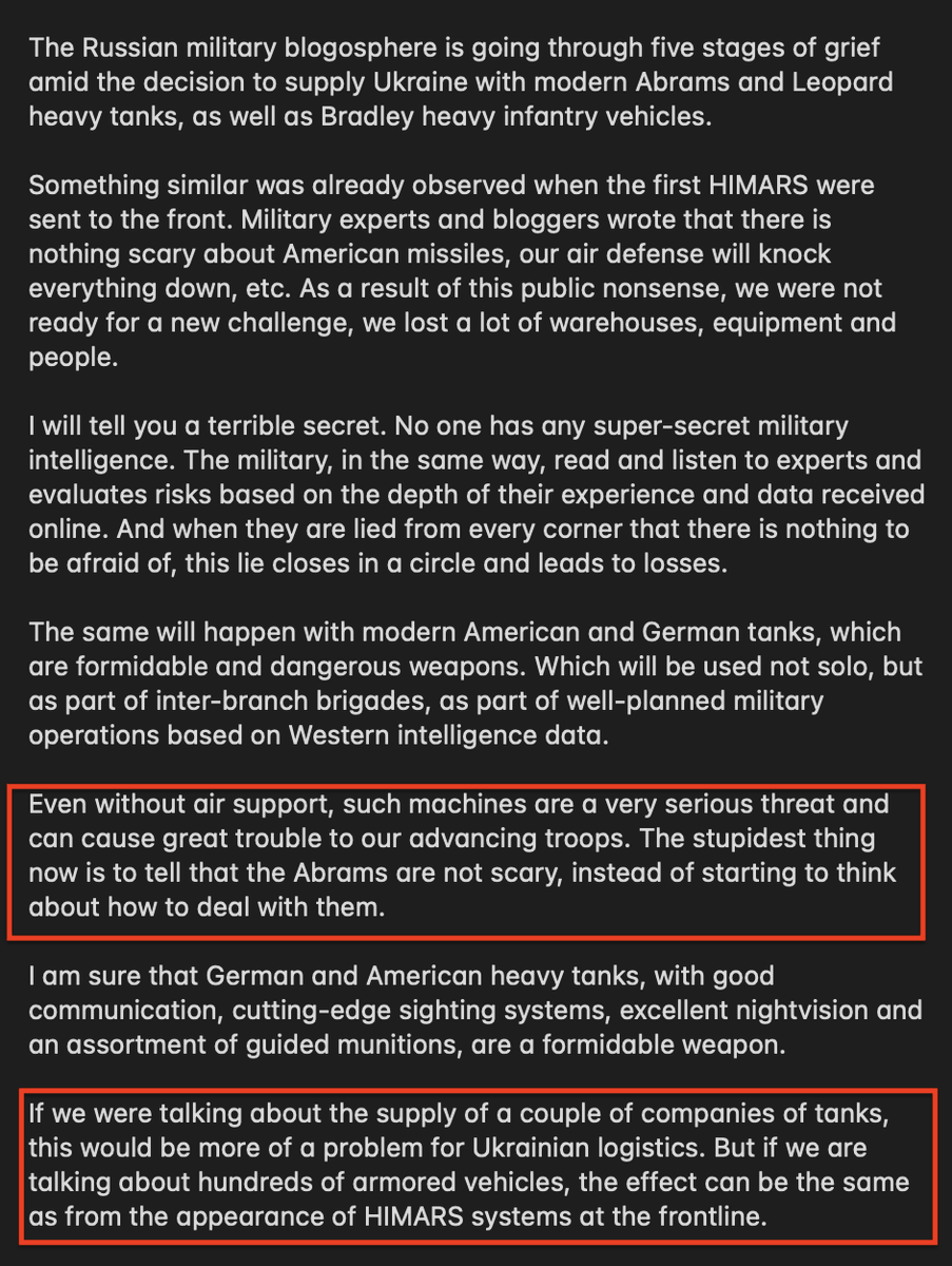 The donation of Westerm MBTs has the russians in a state of chaotic disarray with meltdowns, ignorance/denial/bravado and infighting across the Vatnik information frontlines.