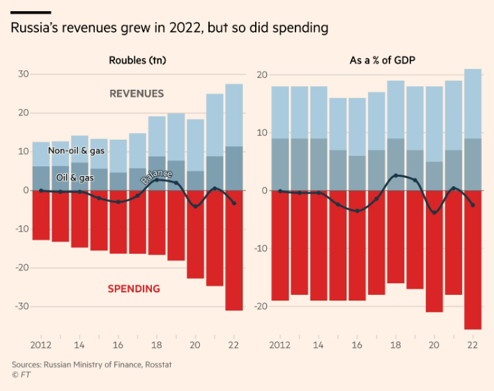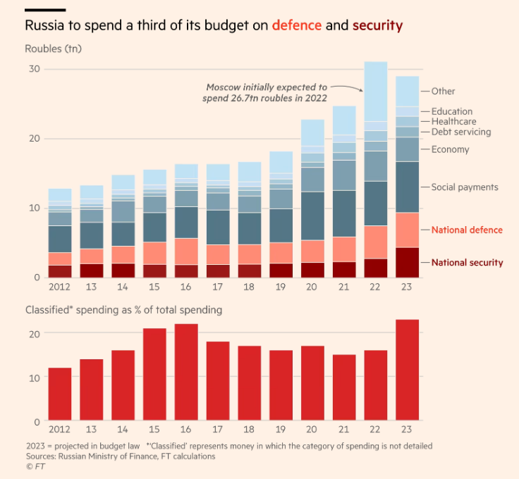 To compensate for the increase in defence spending — which now accounts for a third of all budget spending approved for 2023 — the Kremlin has been preparing to plug the holes by dramatically cutting its fiscal expenditure and reliance on international capital markets.