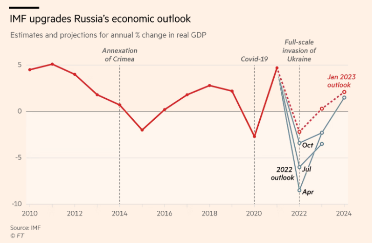 Instead, Russia’s gross domestic product fell by just 2.1 per cent, significantly less than the US contraction during the 2007-09 financial crisis, as record oil and gas profits of Rbs11.6tn ($168bn) helped the Kremlin compensate for western efforts to shut Russia out of global markets and supply chains.