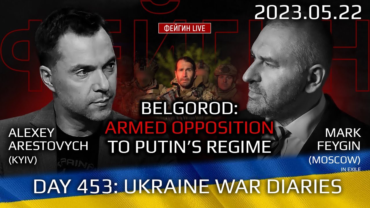 Day 453 of 22 May discusses the initial reports from Belgorod incursion. Starts at 2’14" and continues to 21’ before switching to other issues.