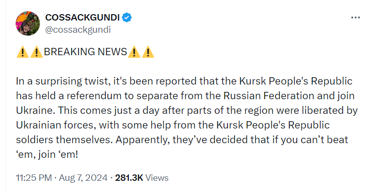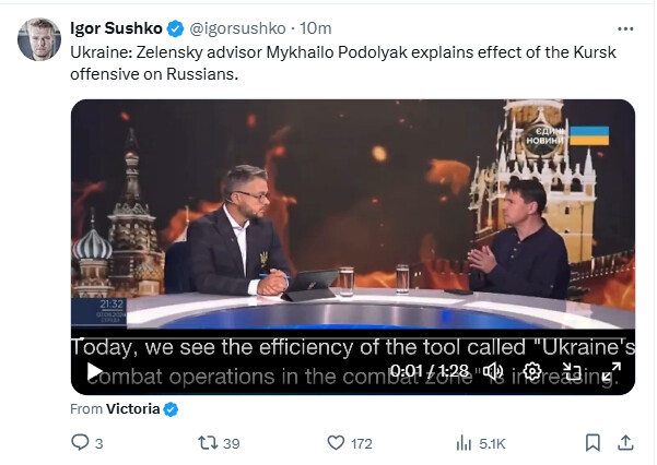 At a 7 August White House press briefing, some journos asked about the US position on Ukraine’s move into Kursk ( against a background of Russia making hay of it).