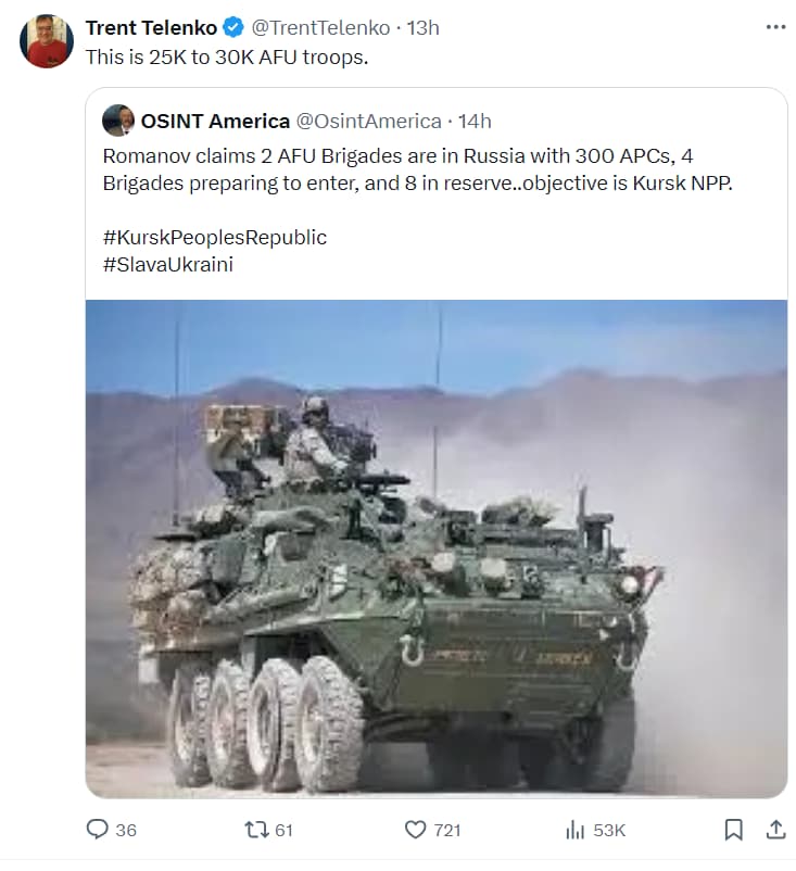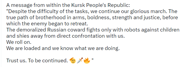 You have probably seen my posts about the lack of coordination and trust in the UA units and commanders; well, the actions of the last couple of days are showing that they are overcoming these faults. There is excellent coordination between recce forces, arty, armour and engineers - even aviation.
