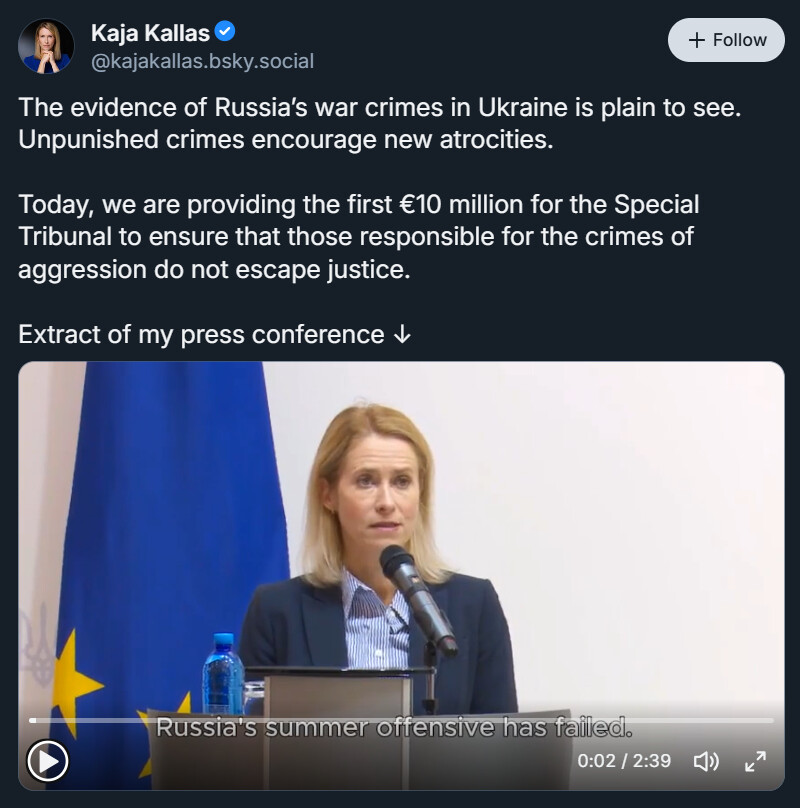 “Russia’s leaders are responsible for this war. There wouldn’t be any war crimes if there would not be the crime of aggression – so there would not be any atrocities either. Nobody should be left unpunished for crimes committed,” she said.”…