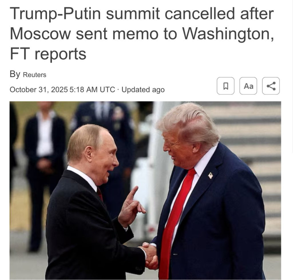 The US has cancelled Trump’s planned Budapest summit with Putin after a Russian memo to Washington, which made tough demands on Ukraine, was quickly backed up by a tense phone call between diplomats from the two countries, - FT