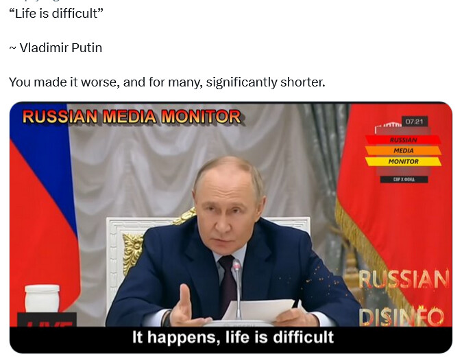 “There’s no stopping Elon Musk, he’s going to do what he thinks he needs to do,” Putin said. “You need to find some common ground with him, you need to search for some ways to persuade him.”