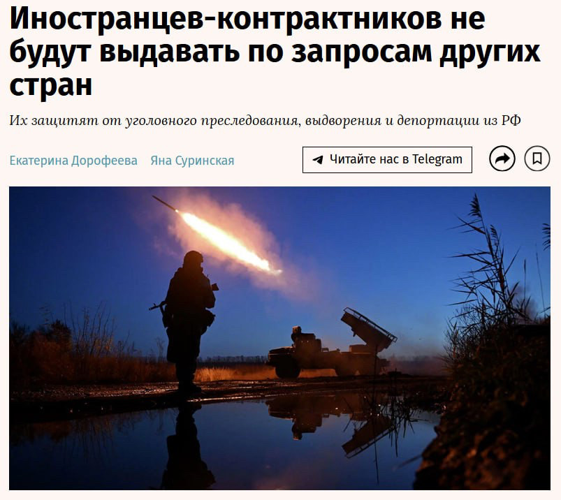 The authorities are also considering a draft law that provides that no decision on deportation, readmission, or expulsion, when provided for by law, will be made in relation to such persons. Russian lawyers say the aim of the amendments is to keep foreign military personnel in Russia.