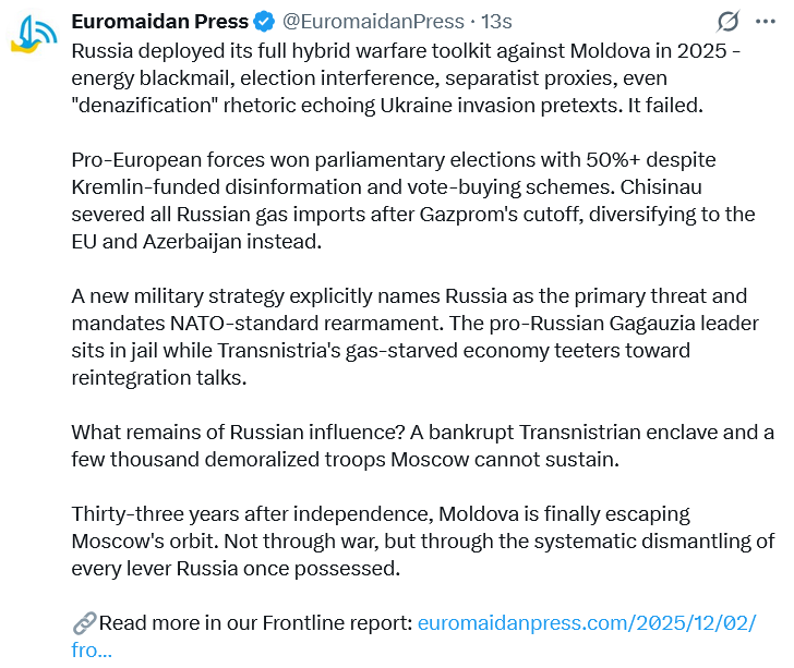 Overall, the collapse of Russian control over Moldova in 2025 marks the quiet but irreversible end of Moscow’s post-Soviet empire in the former Bessarabia.