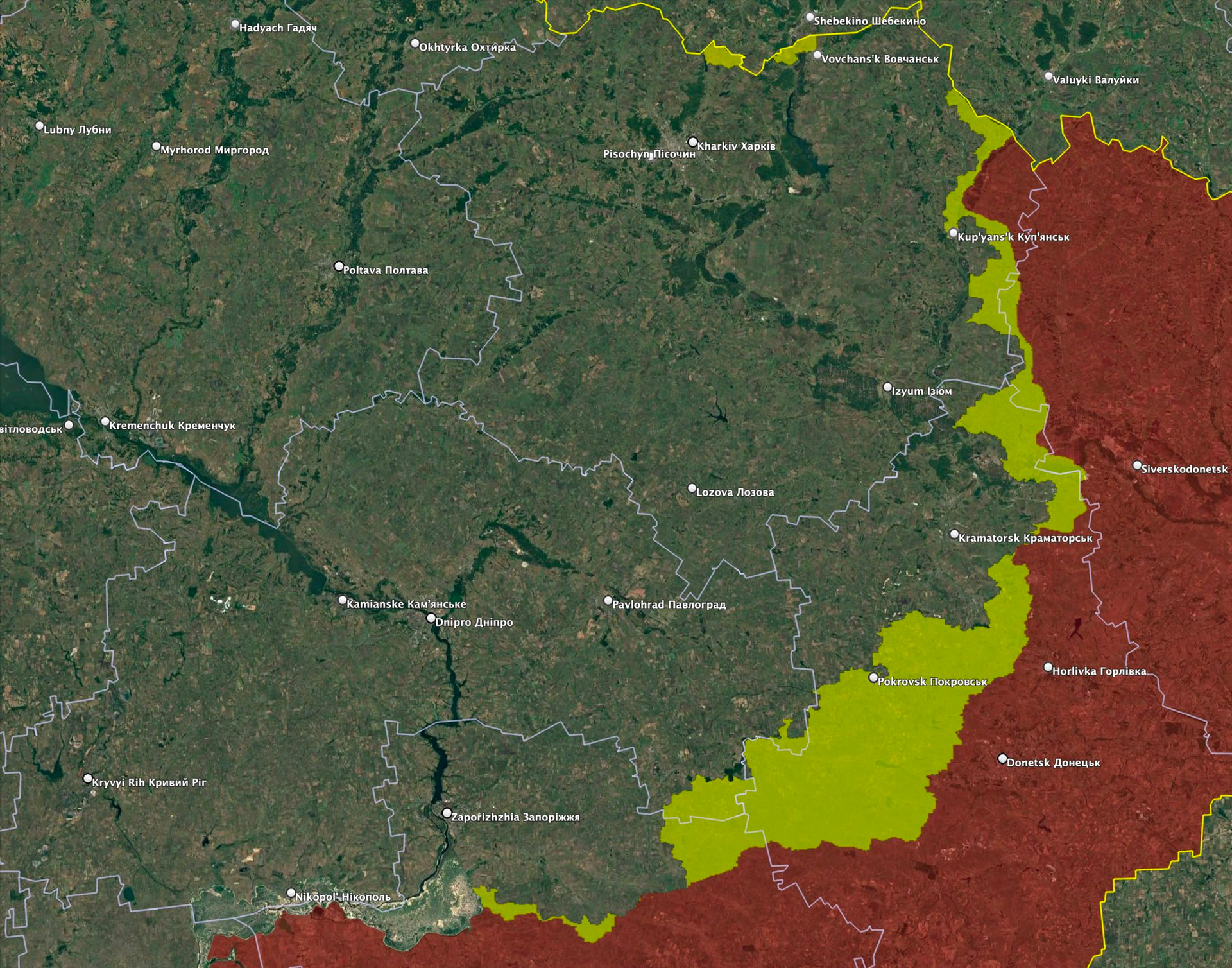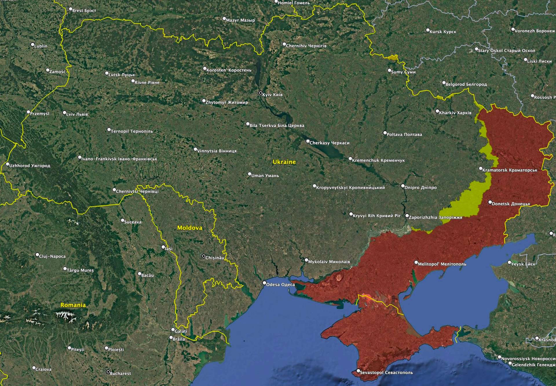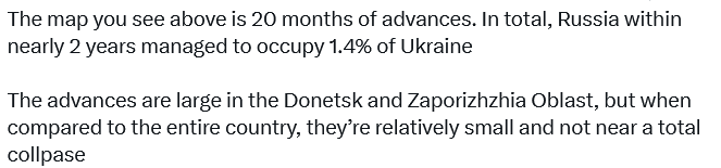 Glorious “World’s second most powerful army” fighting country with a quarter of its population, 1/28 its land area and 1/10 its GDP ‘takes’ territory marked in yellow after more than two years of fighting and at least 800 000 casualties…