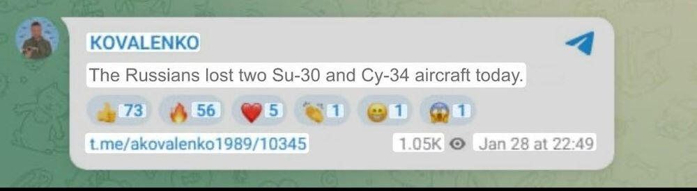 Russian losses per 28/01/26 reported by the Ukrainian General Staff