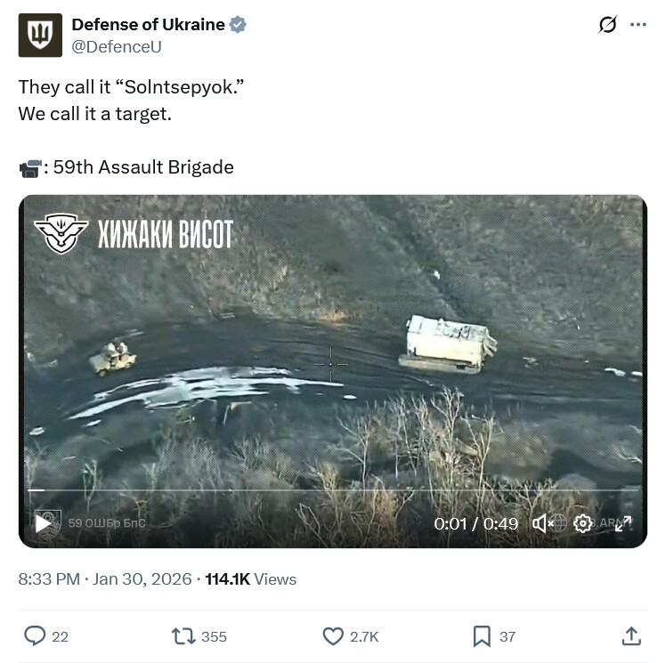 Russian losses per 01/02/26 reported by the Ukrainian General Staff