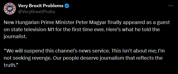 That’s so fantastic to hear that coming from the Hungarian PM. Good on him and good on the Hungarian people for forcing that change.