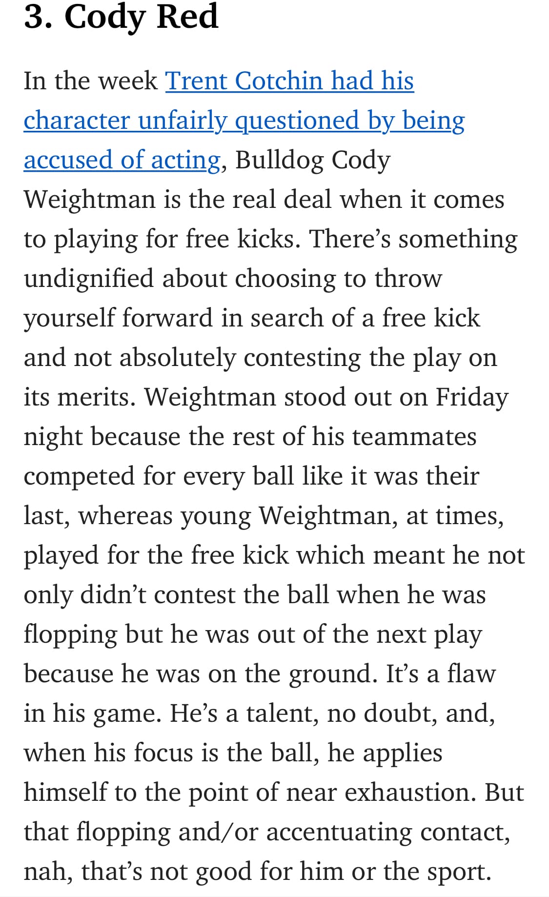 It’s already turning on jack. He at least doesnt milk free kicks in marking contests.
