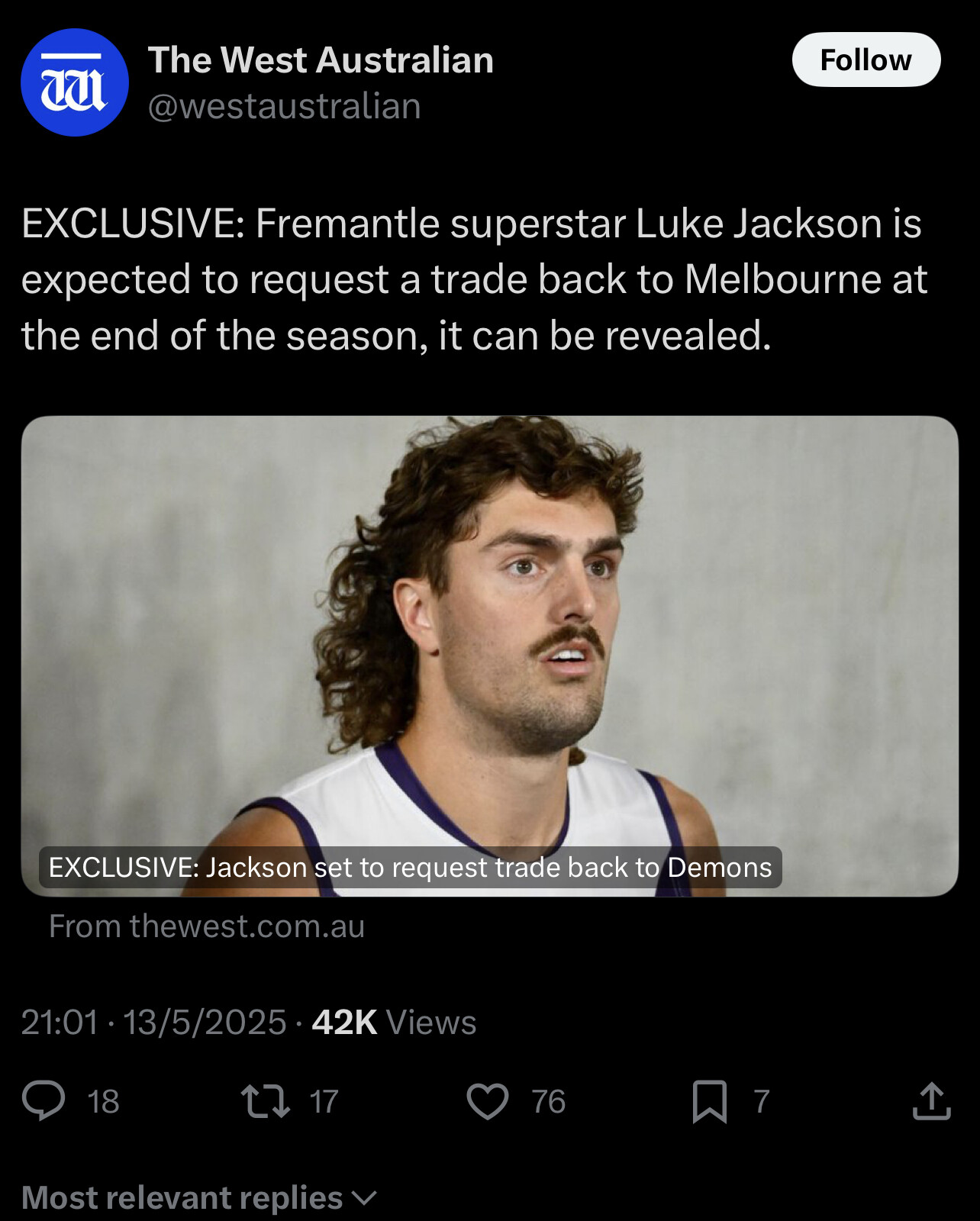 Melbourne going to find it hard to put an offer together. I wonder what their first round pick might be worth to them?