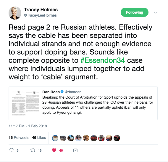 Do the Russia findings highlight the need for us to consider the language we use when talking about the CAS hearing of the 34?