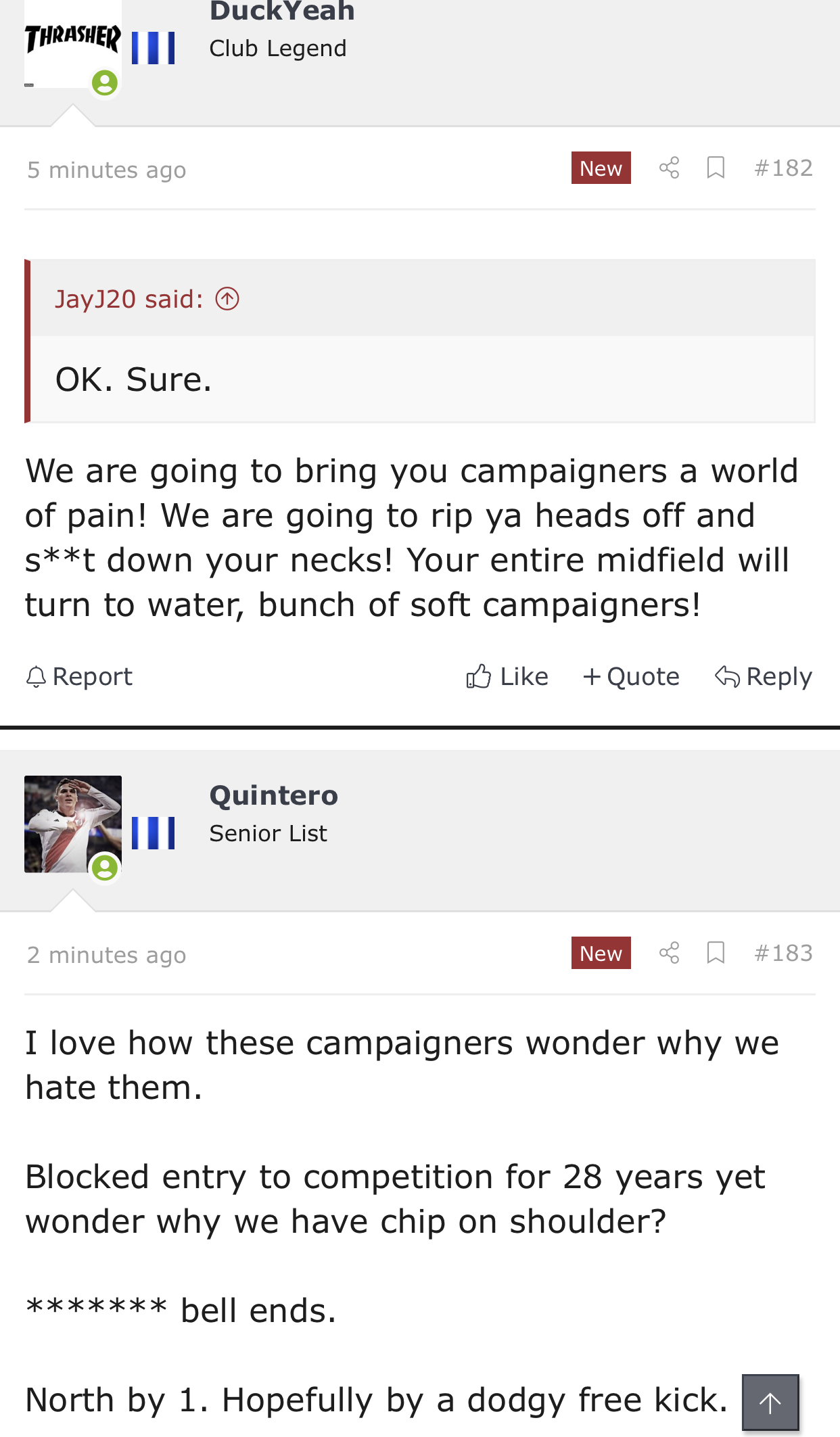 We’ve done very little but ■■■■ north supporters arw cocky foe a bunch of plebs who essentially told their coach to ■■■■ off 5 odd weeks ago cos theyd underperformed for the first half of the year.