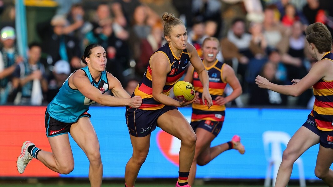 Zoe Prowse in action during Adelaide’s clash against Port Adelaide in round 11, 2025. Picture: AFL Photos