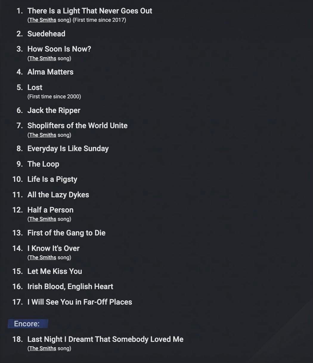 But if I did go, then I would not by disappointed by the set list of this recent show.