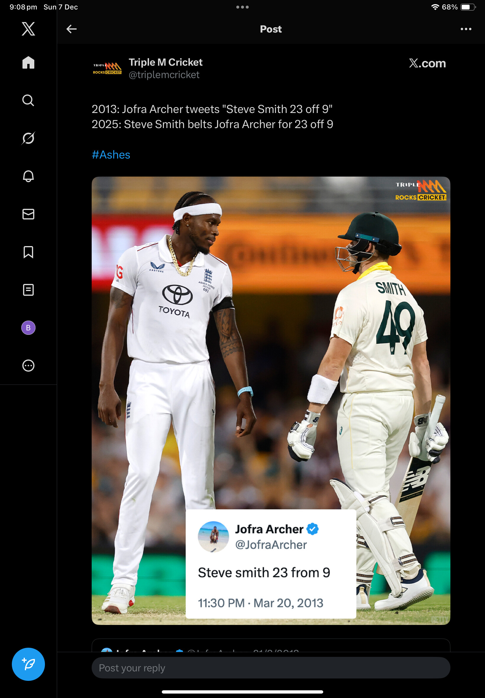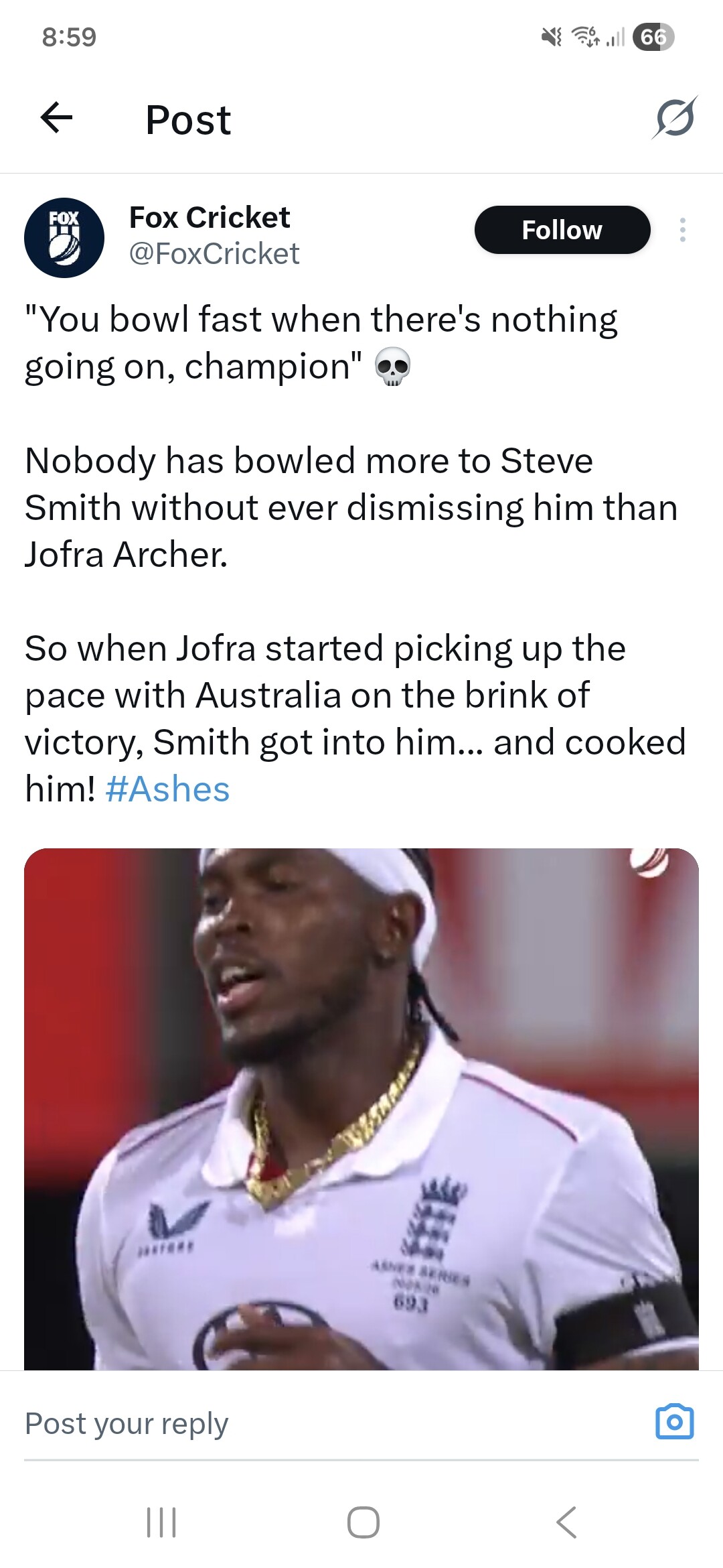Ingland dropping absolute sodas in the field and then seeing Smiff pluck that one to break the partnership was a massive dagger.