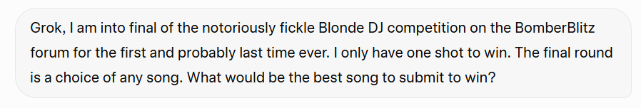 What would be the best song to submit to win the Blonde DJ competition on BomberBlitz forum?