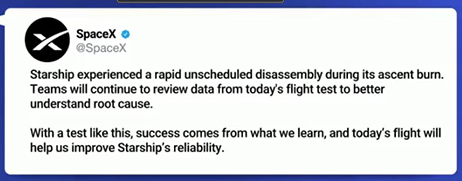 Rapid unscheduled disassembly, gotta love it. Just say it f**ing blew up.
