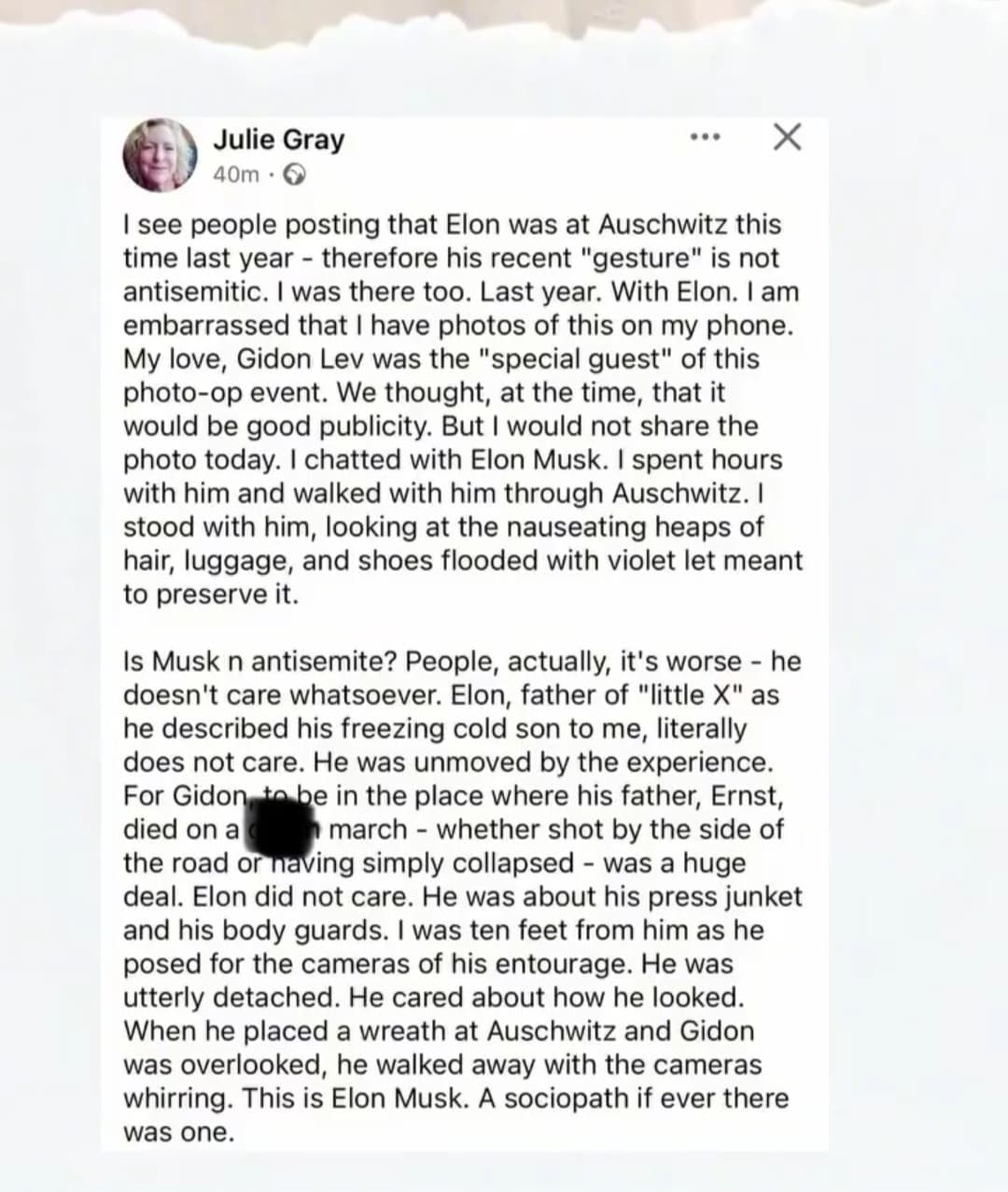 Bizarrely the Anti Defamation League didn’t consider it a Nazi salute, calling it an ‘awkward gesture’ saying that Musk is a friend of Israel…then hours later he’s shitposting jokes about the holocaust and they make a statement.