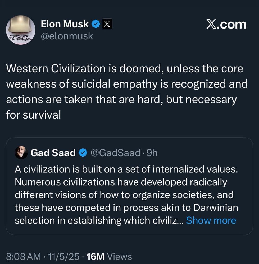 He really wants to tell people the plot of his real time sci fi novel, and he’s going to ride this ‘suicidal empathy’ bit until he’s raw, but he’s still a bit cautious about the whole plebs not wanting to participate and wanting instead to storm his compound and rip his head off. What a dumb, dangerous, intellectually and emotionally arrested manchild he is. Lock him in a basement with a Vectrex and bag of Cheetos. I’m sure his ‘innovation’ will continue very handily without his input on door handle design and such.