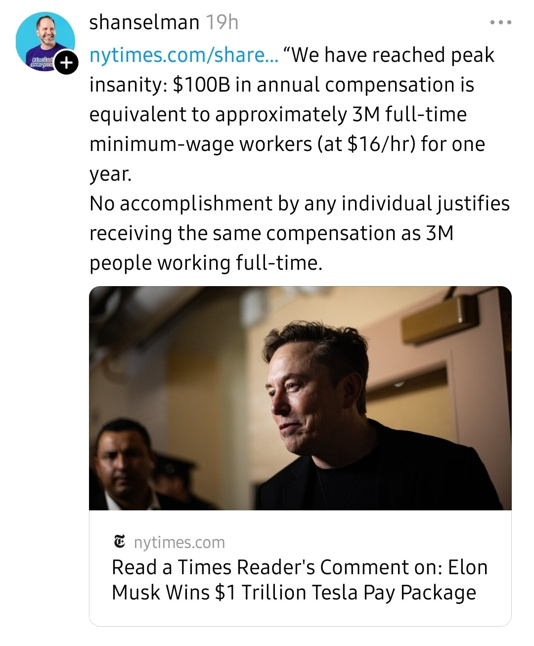 So 21m items at $100k a pop is $2.1T. So half will go to Elon?