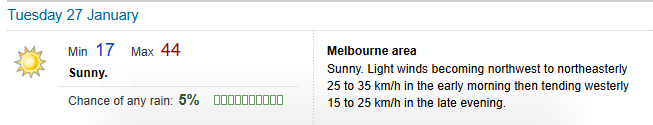 Fark… Tuesday’s forecast for outer east is now saying 45 degC.