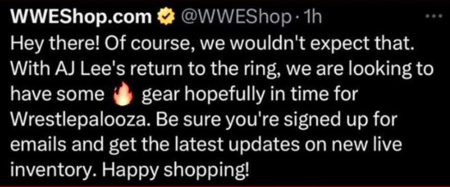 Now to see if WWE can quickly rustle up a new NXT show or the like for the afternoon.