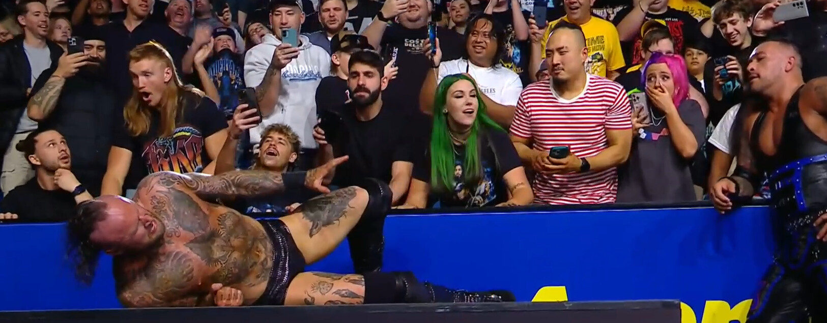 In order, Tuckman (clear BOG) + Tarlee (green hair) + Shay Kassidy (pink/purple hair) get the top acting votes from me. Brooksy gets no votes, and Stevie Filip gets way negative votes… way to blow your opportunity, you are there to sell the moment.