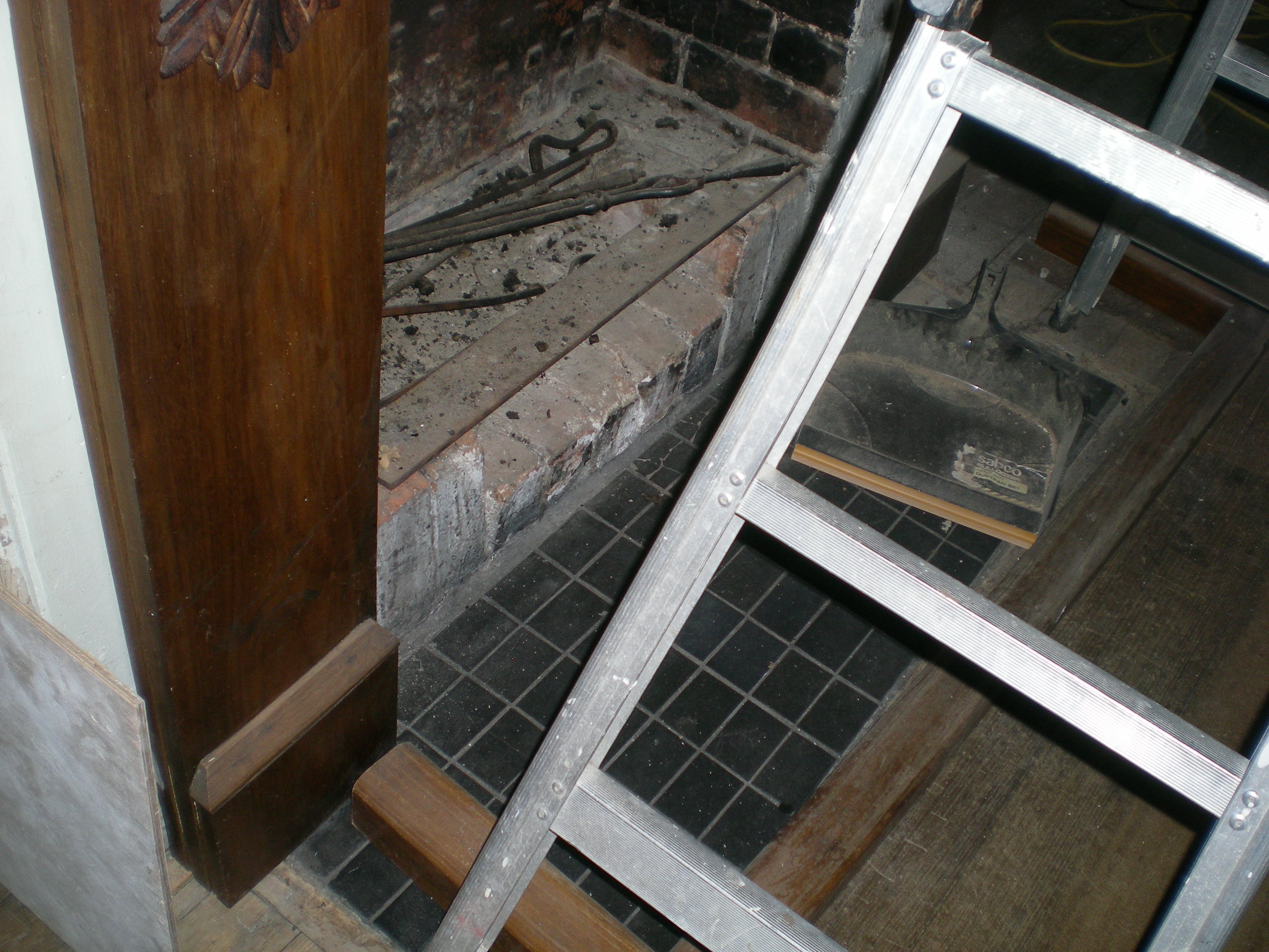 when Mum and dad bought the house it had brick fireplace/mantle installed so in 1984 Mum had it removed and more timely mantle installed, evidence of that!!! I had to engrave my name in the wet concrete!!