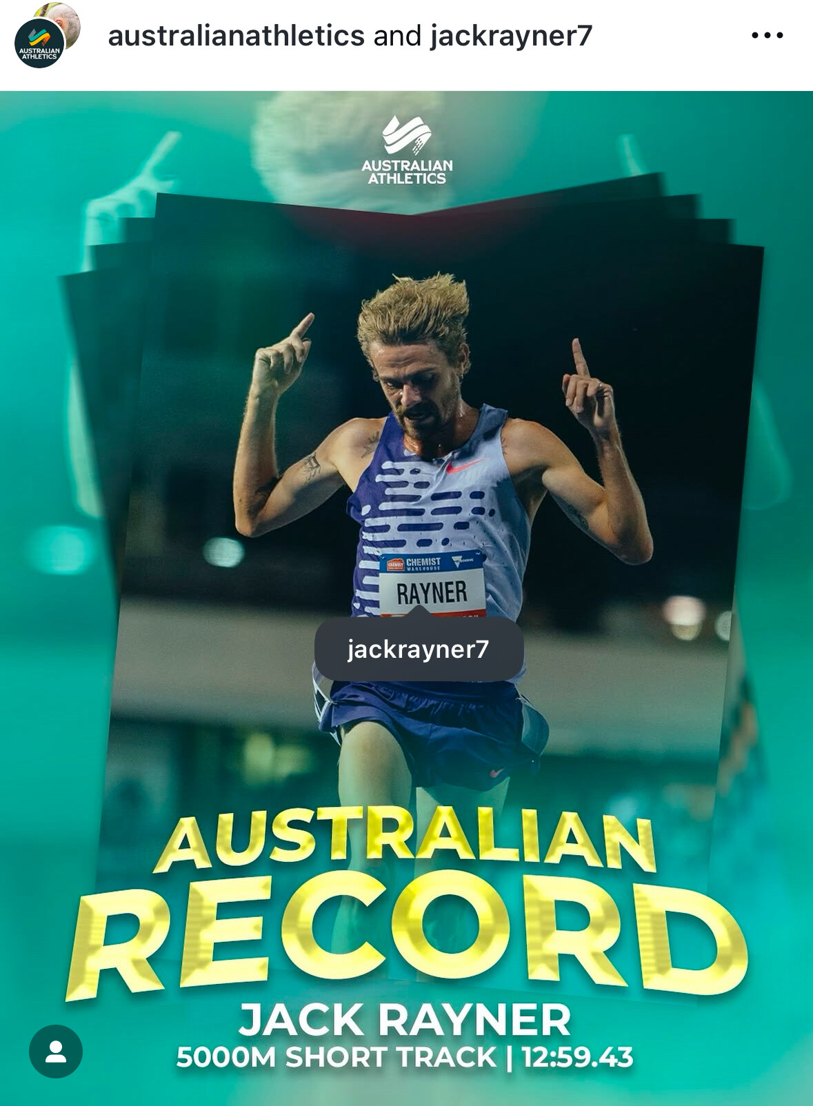 another indoor Australian record this time over 5000m and third quickest Aussie indoor/outdoor over the distance