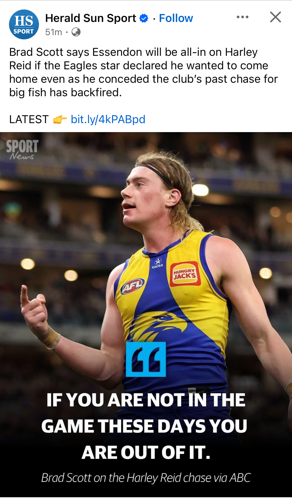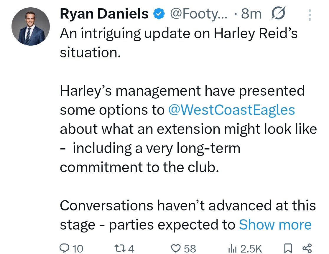 Interesting coincidence. The same day Brad says he’d make a play if Reid was available, Harley’s team calls WC to lock in a contract. Obviously the thought of playing for us was the last straw.
