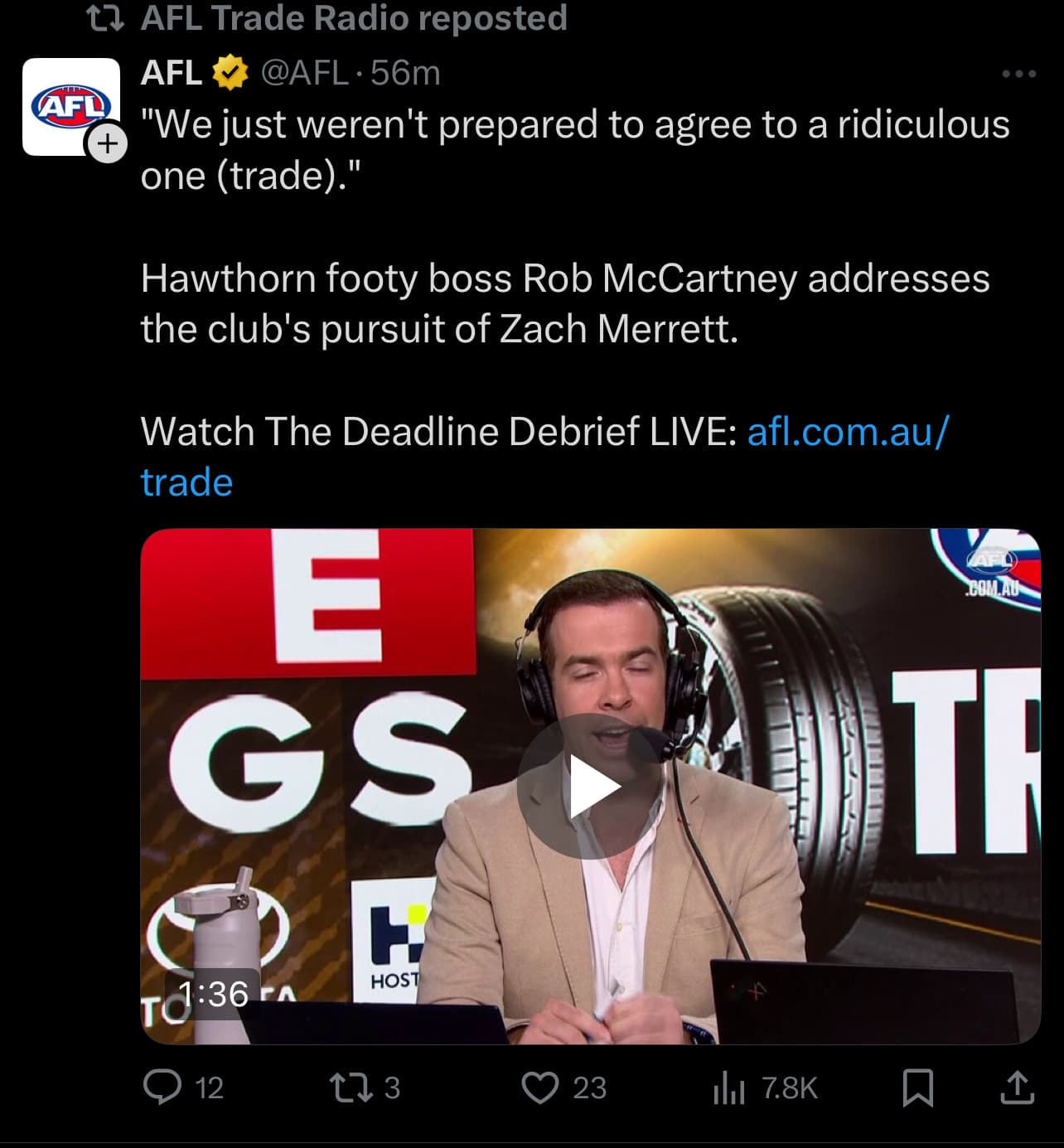 Interesting we’ve put Vozzo up on trade radio debrief this morning rather than Rosa. Pretty sure all other clubs have put their list manager on.
