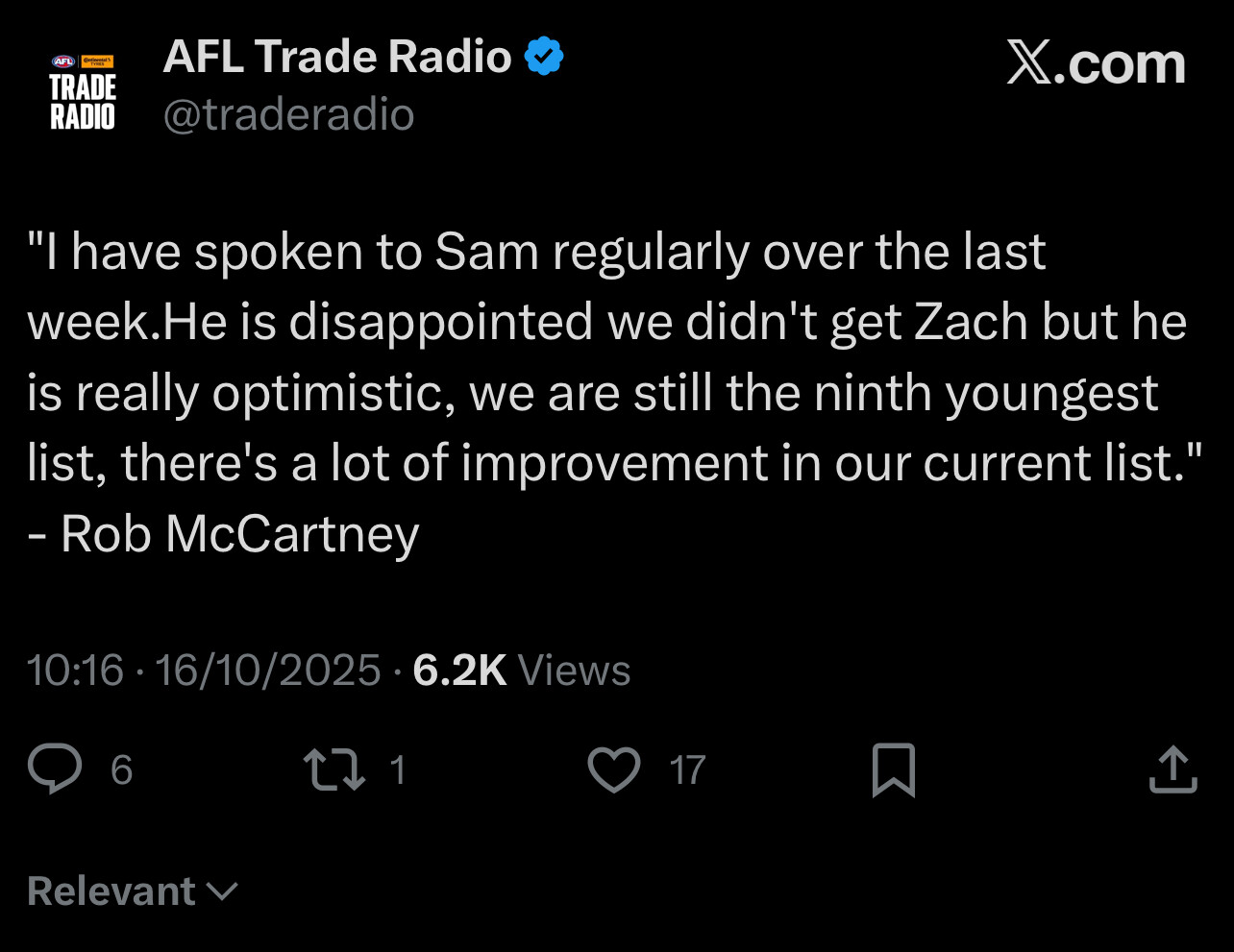I’m all for acknowledging and forgiving Zack back - after all he’s going to go down as one of our greatest ever players. With the greatest of respect, I’ll also say this - As a leader of the club where he’s spent most of his career and has been anointed skipper. He’s broken trust, irrelevant of what people say in terms of today’s sport being open and commercial (there is a way to do this - if he wanted out, as a captain with a team largely made of impressionable youngsters, he should’ve consulted the LT and senior players and aired his desire and worked through those channels rather than getting dodgy advise from the wrong people (Tom P & of course S Mitchell - who is an absolute snake and seems to be on a mission to disrupt many athletes without considering the human impact and cost…..the karma bus is currently charging and should take off soon mate)