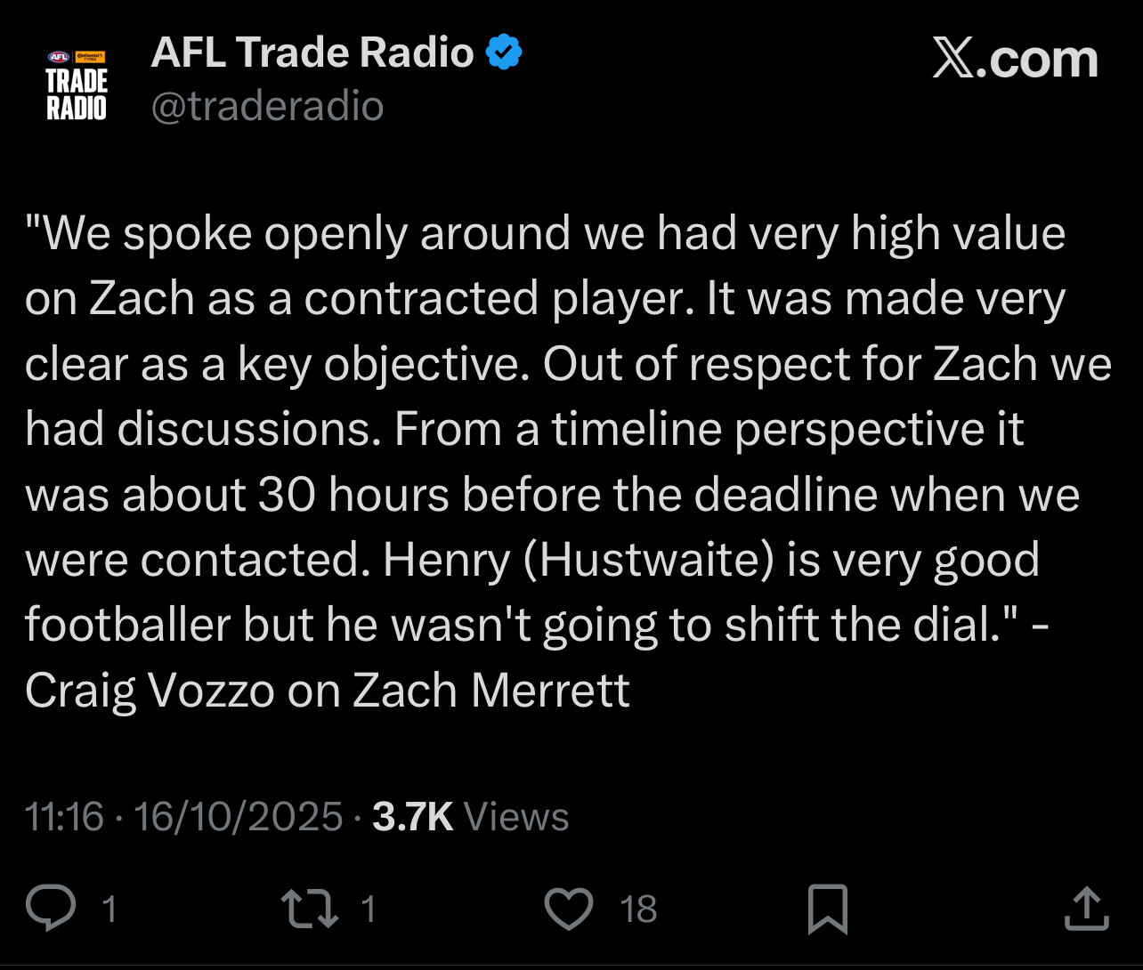 Oliver got traded for a future 3rd round pick and melbourne are paying half his salary. I think if we wanted to get a deal like that done for Merrett, we could have done it.