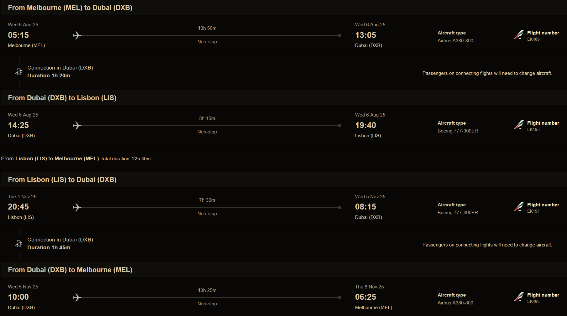 Emirates punctuality is pretty good too and I reckon from Australia to Dubai Iāve always arrived at least 5-10 minutes early