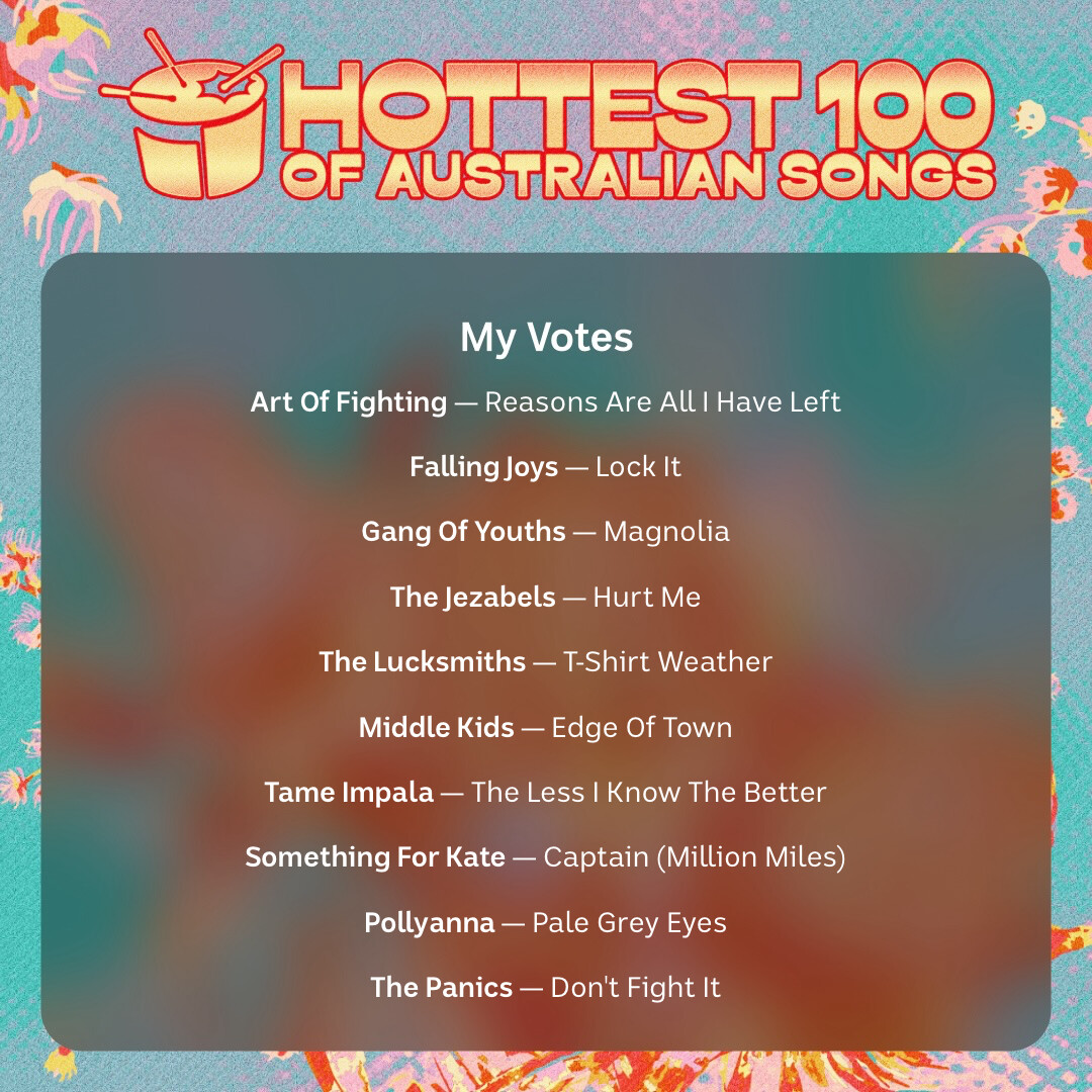 Is it Hottest 100 Australian Songs Which Aren’t Caustic Soda, just to give everyone else a go?