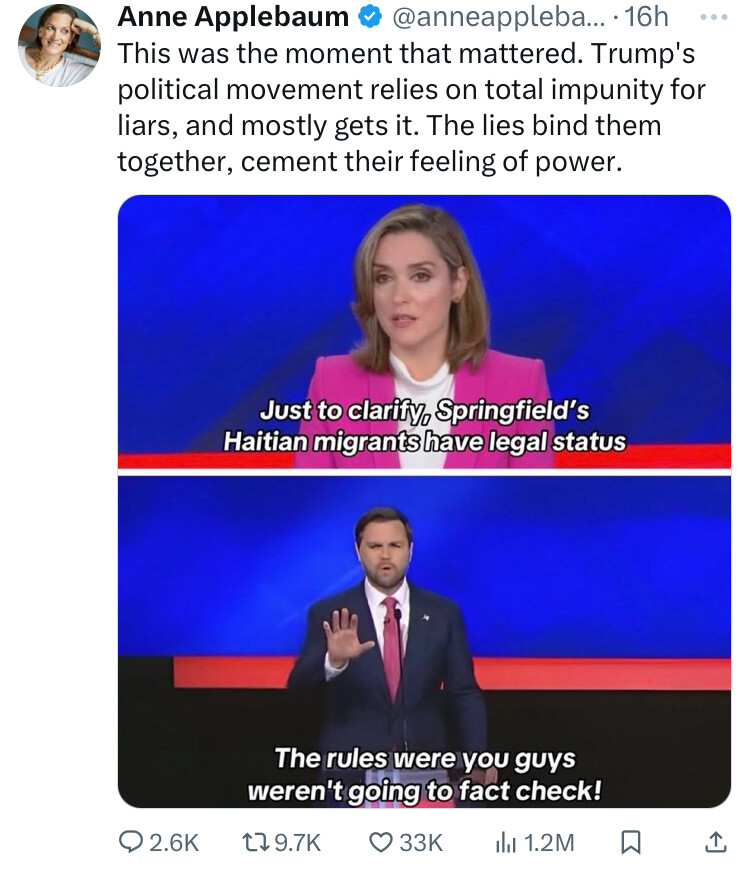 I didn’t watch the VP debate (because why would you?), but the consensus seems to be that Vance won.