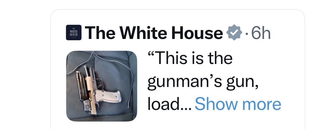 Whitehouse saying this is the guys gun. Only problem is its a photo taken from reddit
