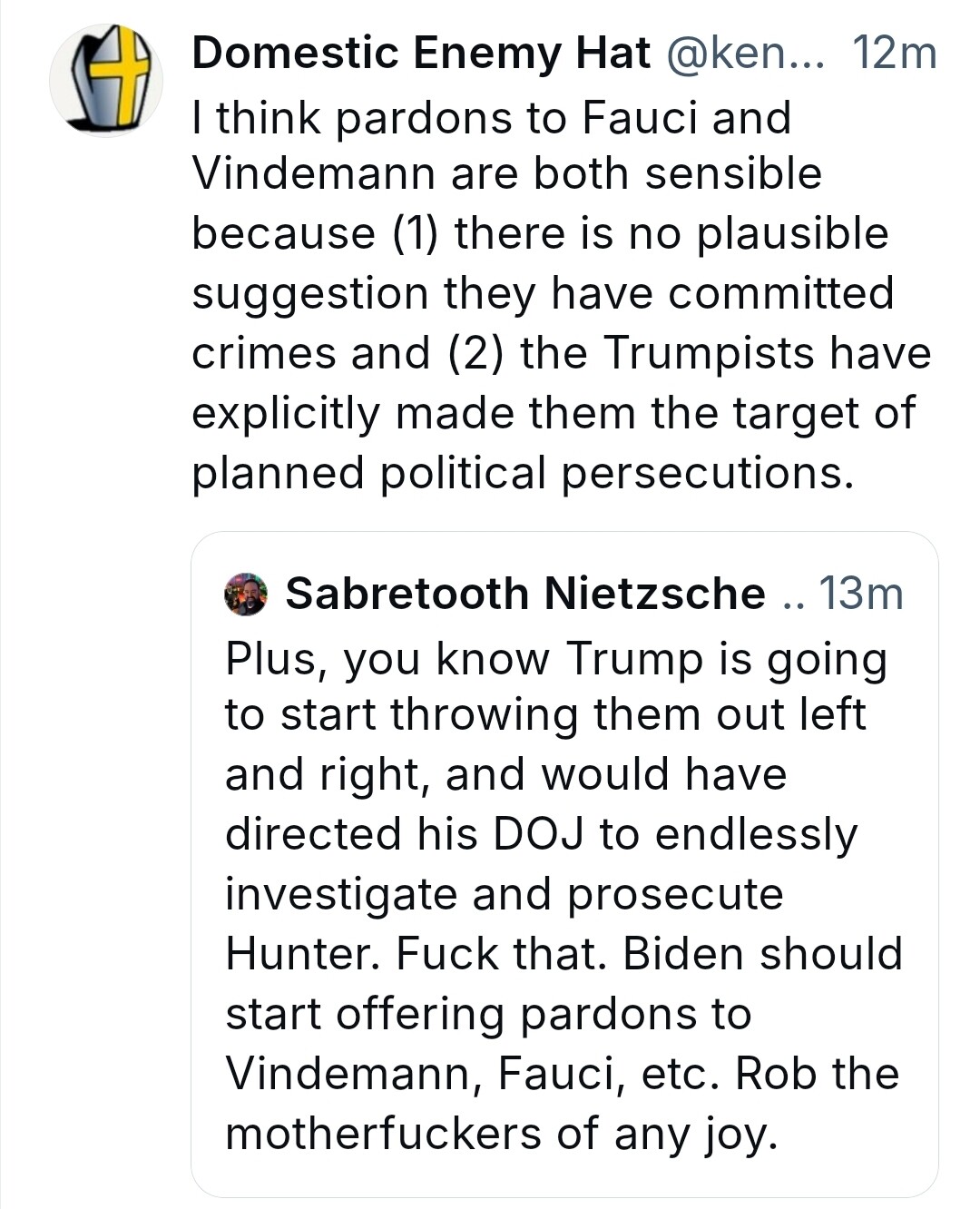 So you’re comfortable in Joe pardoning his son?